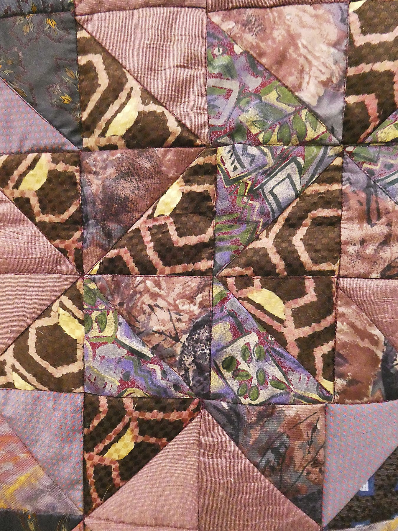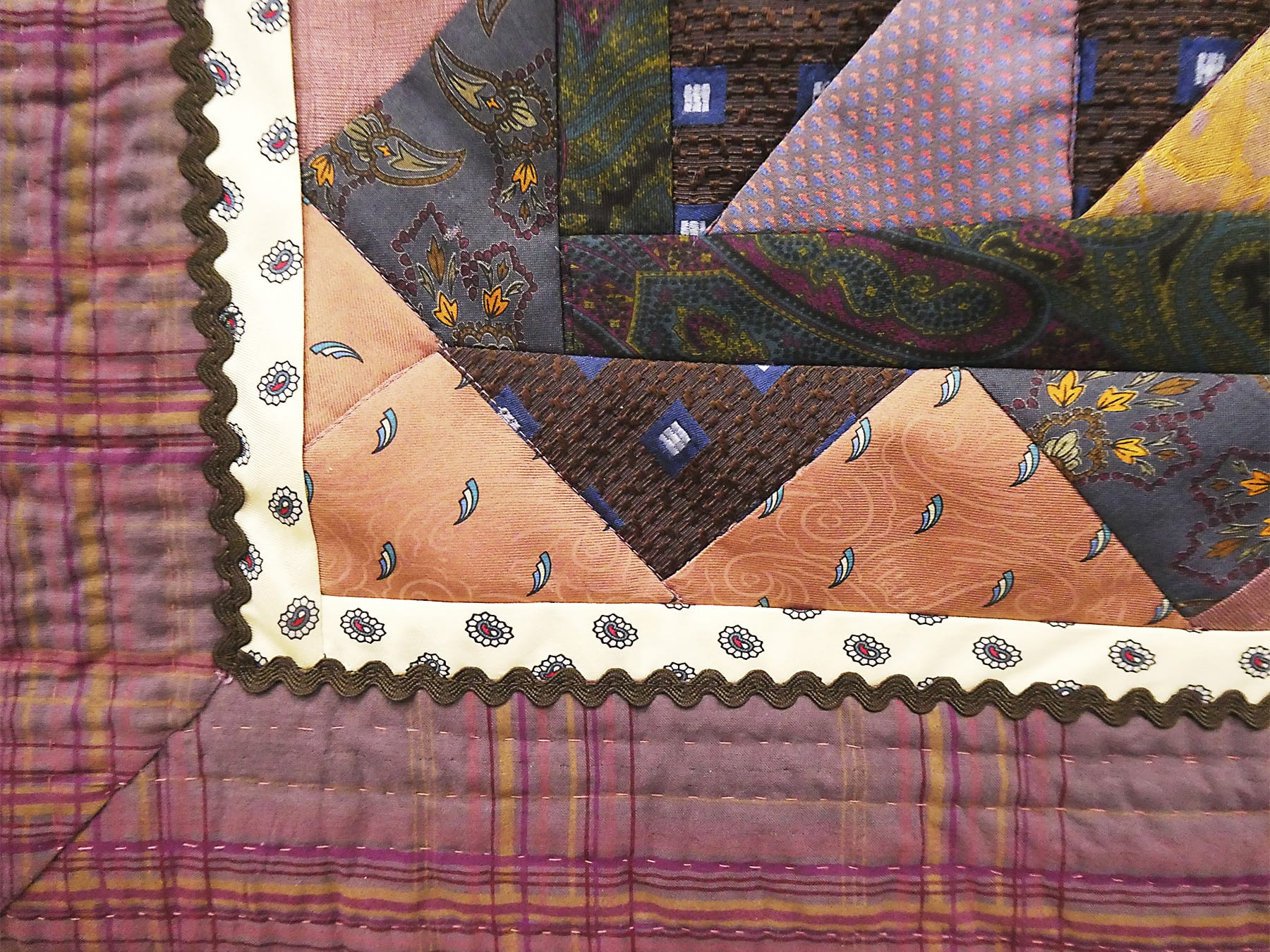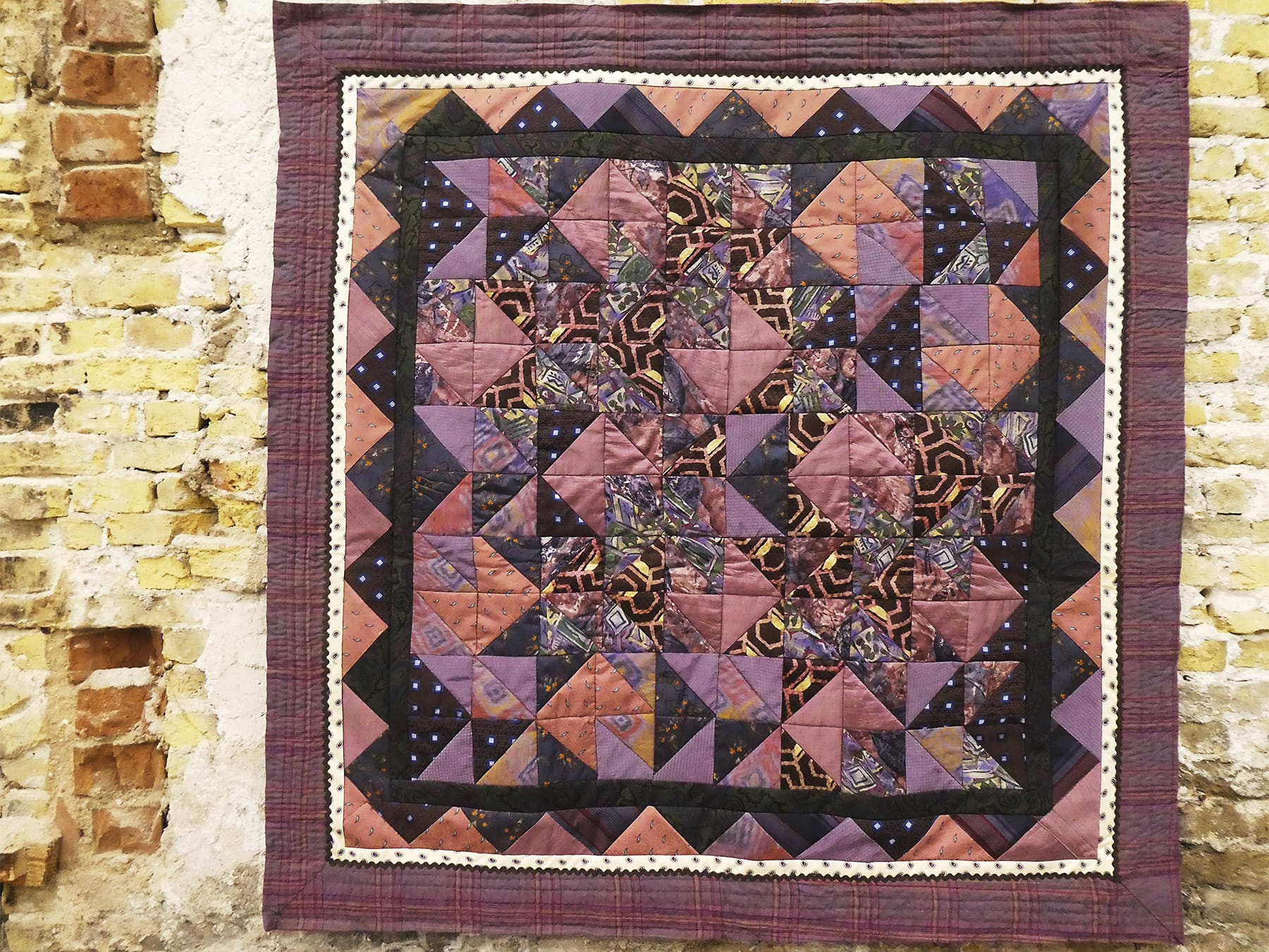 Materiaal: 12 zijden stropdassen en met de hand gequilte katoen voor de rand.